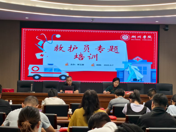 为筑牢校园安全屏障,提升学工队伍应急救护能力,9月7日,学校特邀湖州市吴兴区红十字会应急救护讲师团在12-101会议室开展救护员专项培训。本次培训覆盖全体辅导员、公寓辅导员及学工部、团委、保卫部工作人员,校党委副书记唐华出席。培训班通过“理论+实操+考核”的沉浸式教学模式,系统提升学工队伍应对突发状况的专业救护能力,为守护师生生命健康安全奠定了坚实基础。