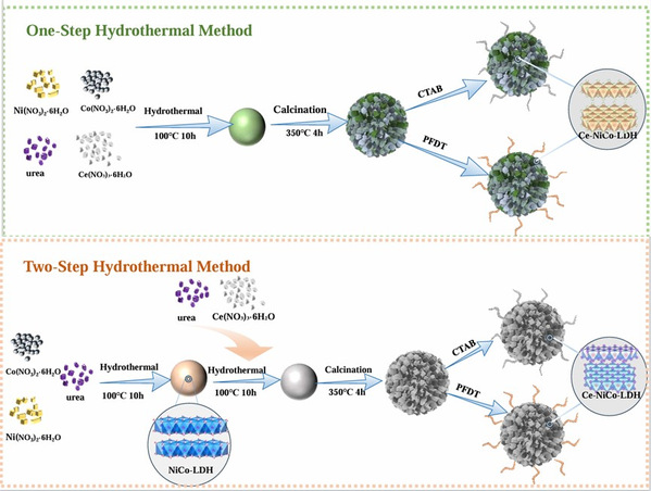金属材料在工业和日常生活中不可或缺,但全球每年因腐蚀造成的经济损失高达2.5万亿美元(占全球经济产出的3.4%),并伴随严重的安全风险。传统防护策略如涂层、缓蚀剂和合金化虽有效,但层状双氢氧化物(LDH)涂层因其独特的层状结构和化学可调性展现出显著优势。水热合成法能有效提升LDH涂层的屏障性能和耐久性,然而纯LDH涂层因活性位点不足和亲水性,易受电解质渗透影响而降低防护效果。Ce-NiCo-LDH涂层通过多尺度协同机制实现金属长效防护。其基础防护源于层状双氢氧化物的物理屏障效应:垂直取向的LDH纳米片在材料表面构筑迷宫状拓扑结构,显著延长腐蚀介质(如Cl⁻离子和水分子)的扩散路径,同时层间通道通过静电吸附作用捕获侵蚀性离子,延缓其向金属基体的迁移速率。