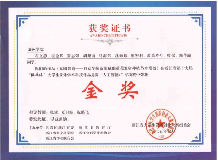 近日,浙江省第十九届“挑战杯”大学生课外学术科技作品竞赛“人工智能+”专项赛落下帷幕,必赢官网项目《椒选新机-智能螺旋分选技术驱动青花椒产业升级》《莓园智造—自动导航系统赋能蓝莓种植节本增效》获金奖,取得了历史性新突破。